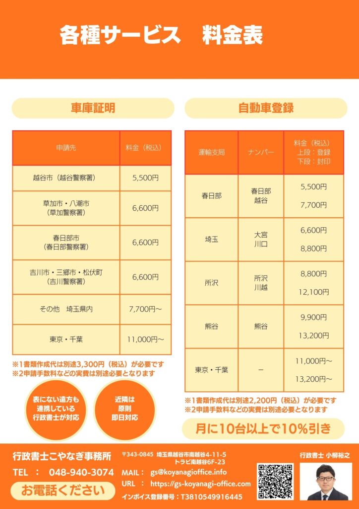 行政書士こやなぎ事務所では、お車の車庫証明申請(届出)、各種登録手続き、出張封印をワンストップで対応いたします!